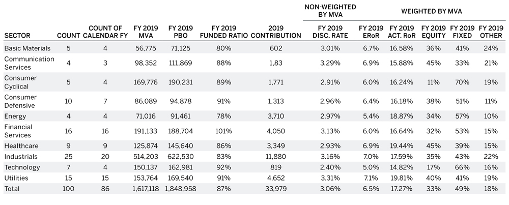 The Milliman 100 companies are the 100 U.S. public companies with the largest defined benefit (DB) pension plan assets for which a 2019 annual report was released by March 13, 2020.
