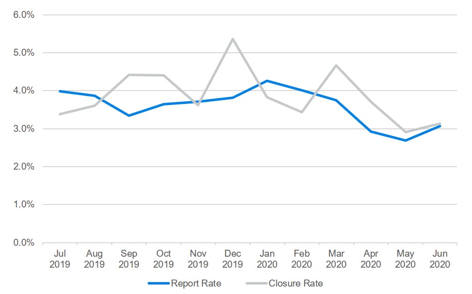 Figure 1: Report and closure rates by month