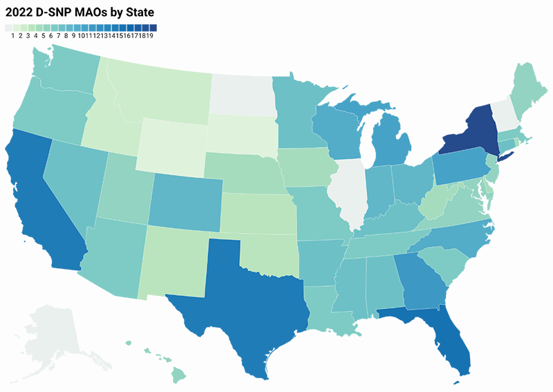 This information is intended to provide an overview of the CY 2022 Medicare Advantage D-SNP market. The list of considerations outlined in this article is not exhaustive. This information may not be appropriate, and should not be used, for other purposes.