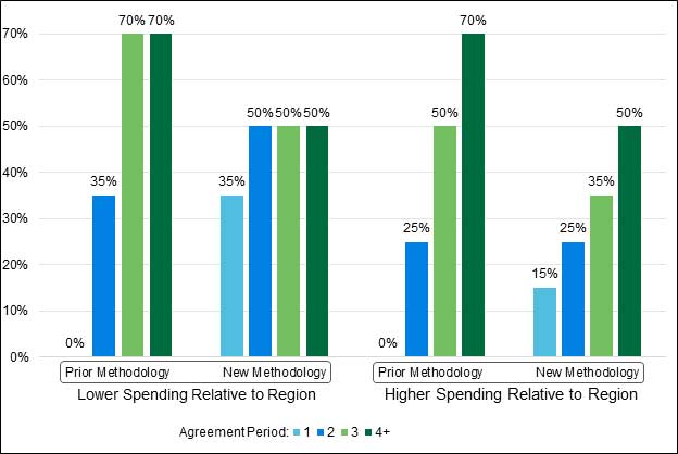 Figure 1: Regional Cost Adjustment Blending Percentages by Agreement Period, for Agreement Periods Beginning July 1, 2019, and Later