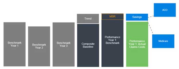 Note: The MSR is the “Minimum Saving Rate” an ACO must achieve before it shares in first dollar savings. The MSSP also has a Minimum Loss Rate or MLR. No settlement occurs between the MLR and MSR, but ACOs share in first dollar losses once the savings or loss rate exceeds the MSR or MLR.